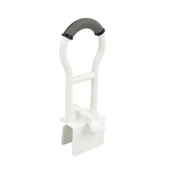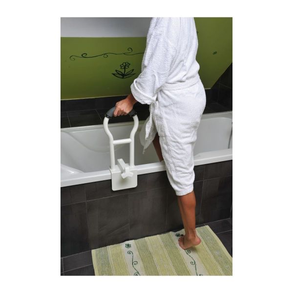 La barre se fixe au rebord de la baignoire et est réglable en hauteur sur quatre points différents.